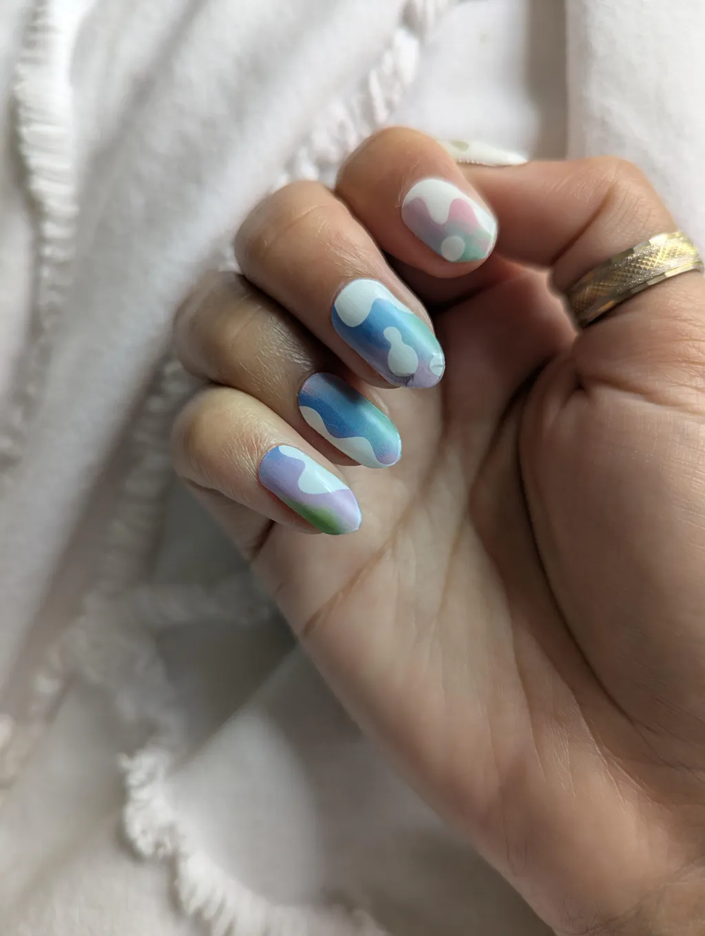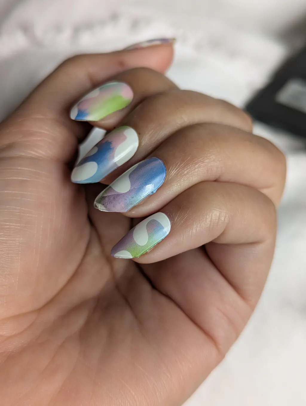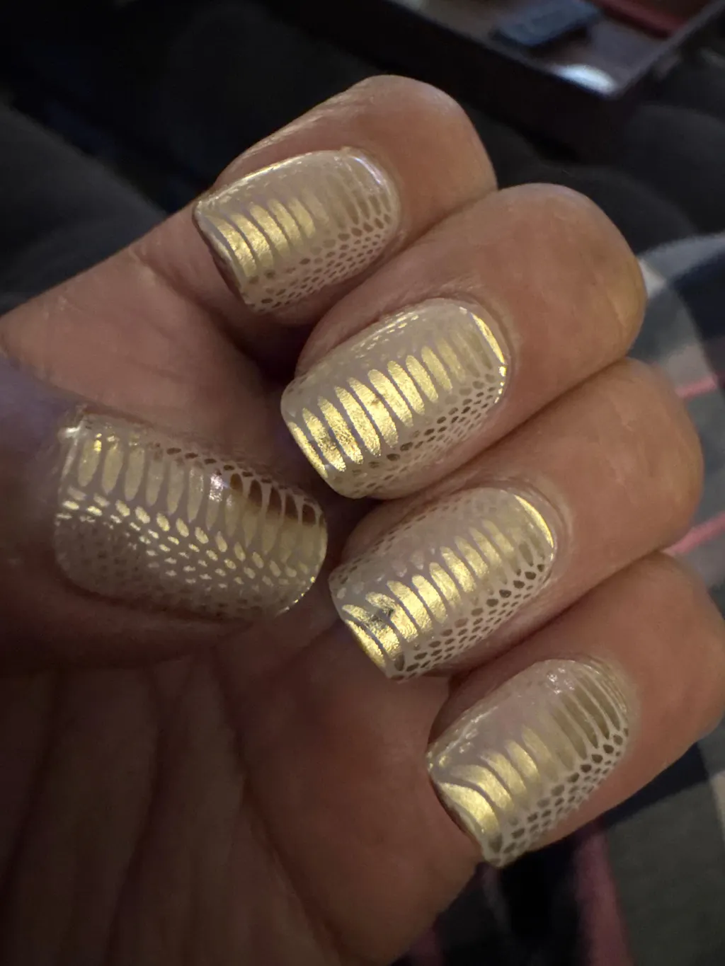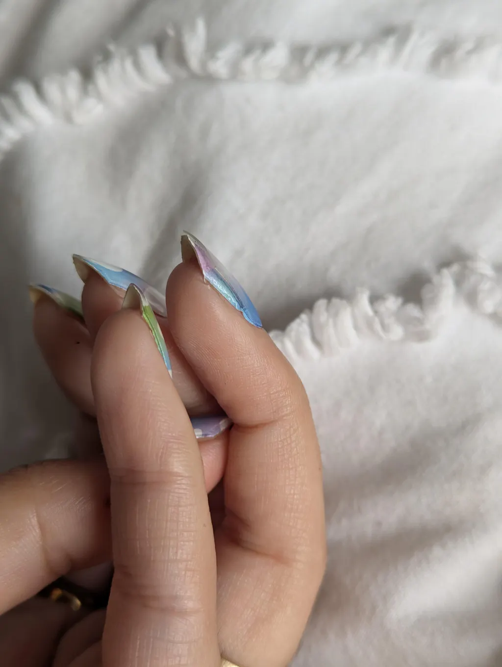 Gutted. Look pretty, but the day after I did them, one has chipped immediately and one has started to peel the top layer off? Don't reckon they will last more than a week unfortunately. Whereas the ones I had on last were on for 3+ weeks and were well and truly stuck on when I came to take them off.