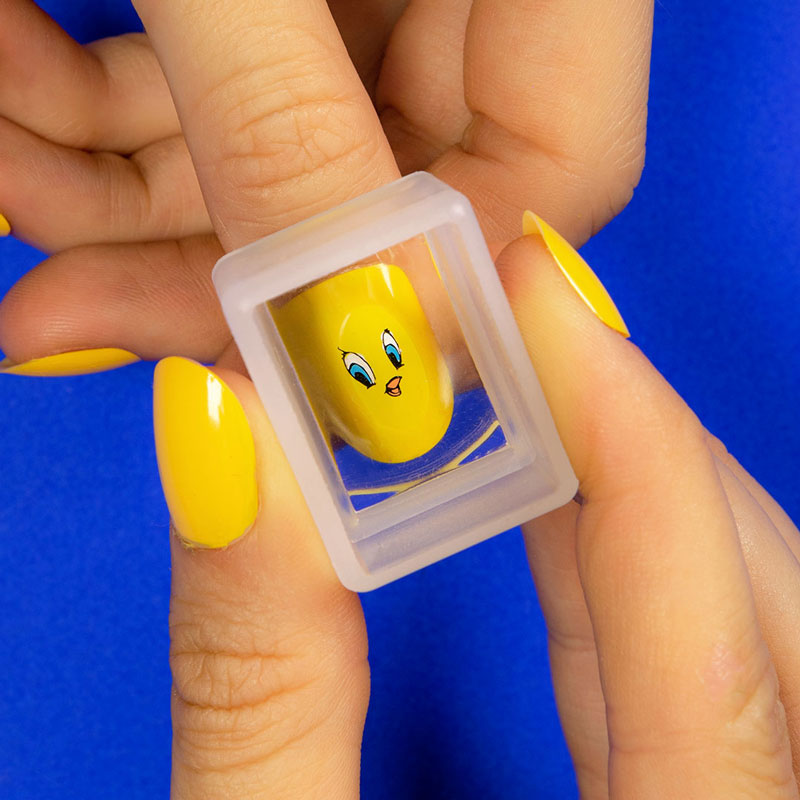 What's up nail-art lovers? This goofy collection inspired by Looney Tunes is full of illustrations of your favourite characters, comic style designs, funny quotes, and cartoony images. Have fun with Bugs and Lola Bunny, Tweety and Sylvester, Road Runner and Coyote, Marvin the Martian, Porky, Daffy, Speedy Gonzales and many more! Oh, and careful with ACME products! That's all nail-art folks!